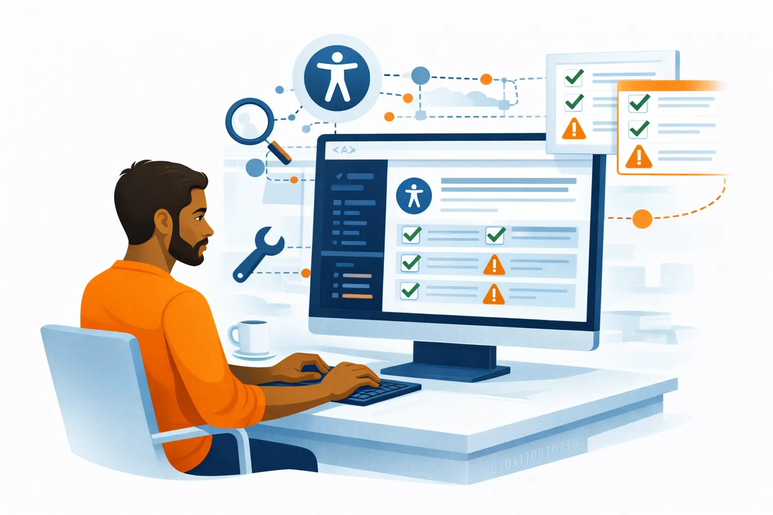 Manual testing follows. Testers navigate the website using a keyboard and screen reader to detect functional barriers.